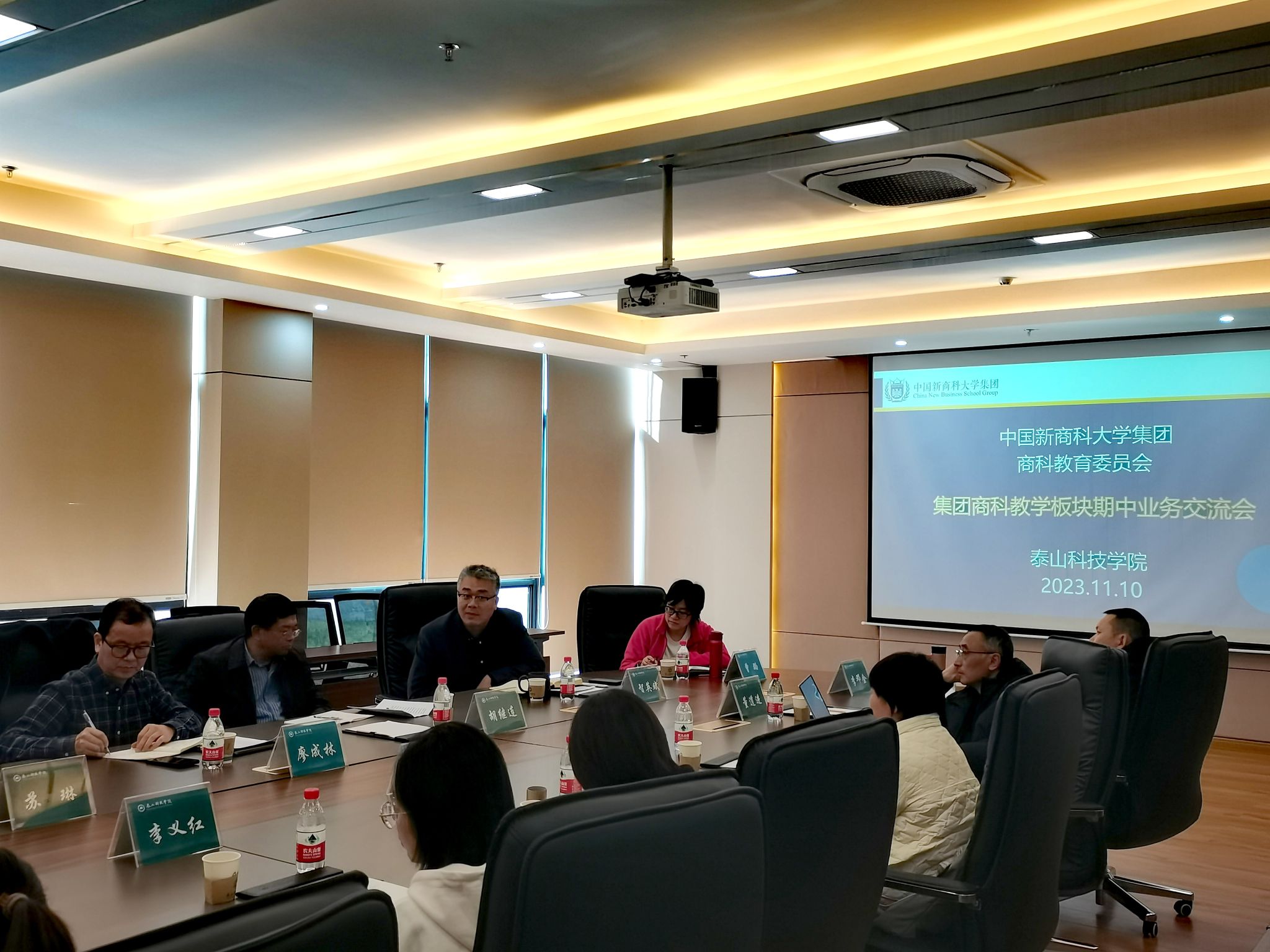 11月10日上午9:00,中国新商科大学集团商科教育常务委员会(扩大会)2023-2024学年第一学期期中会议在泰山科技学院图书馆第二会议室召开。集团商科教育委员会主任、商科带头人廖成林,集团商科教育委员会副主任、晋中信息学院常务副校长胡继连,集团商科教育委员会主任助理、重庆移通学院校长助理张平,晋中信息学院副校长苏琳,泰山科技学院副校长智英斌,集团三校四区淬炼·国际商学院(冲突营销学院)、新商科教学部院(部)级负责人、部分教研室主任及教学团队负责人出席会议。会议由集团商科教育委员会主任廖成林主持。