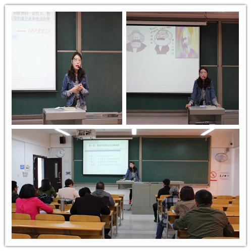 首先,在一首《马克思是个90后》的歌曲中,靳银霞老师开始了《马克思主义基本原理概论》绪论部分的讲解。整堂课下来,靳老师的授课条理清晰,逻辑性强,案例丰富,采用互动式的课堂教学方式,整个课堂生动而活泼,充满了感染力,显示了靳老师丰富的文化底蕴和扎实的教学功底。