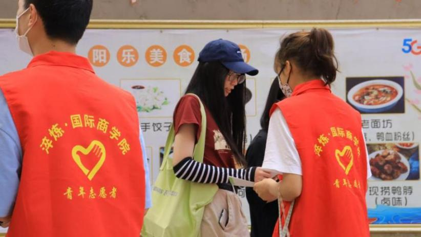 与此同时,在移通学院的各个食堂等人流密集区,志愿者们不断穿梭,向路过的学生们发放财税宣传手册,“同学,你好,本月是税法宣传月,这是我们为你准备的税收普法大礼包,里面记载了就业创业 ......”。