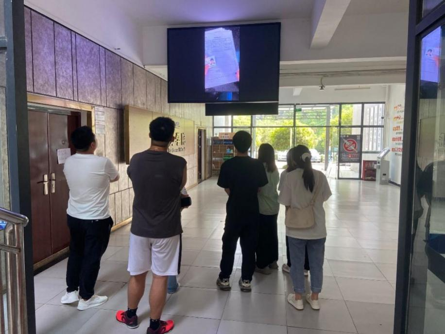 五教的同学们行走在楼梯间,或有讨论声,或有惊异声,或多或少都被视频的内容所吸引,这次宣传的内容有点不一样。五教一楼的大屏里,正播放着用移通学院真实事例改编的个人信息泄露案件,贪图小利,损失巨大,因为对税法的无知,错失补救的机会,惨案由此产生,停在楼梯间的同学们看着视频,内心一遍遍敲着警钟,同时也暗暗记住视频里的补救方法,预防自己发生同样的错误。