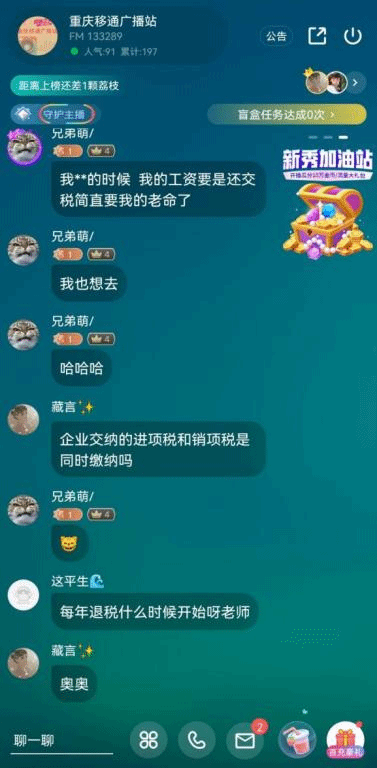 “当我们赚到人生第一桶金要缴什么税?”“国家在鼓励大学生创业方面有什么税收优惠政策吗?”“想利用业余时间做兼职,要不要缴个人所得税呢?我们能享受什么税收优惠呢?”,同学们在直播间积极提问,表现出了对税收知识的浓厚兴趣。