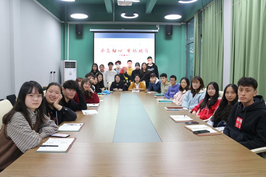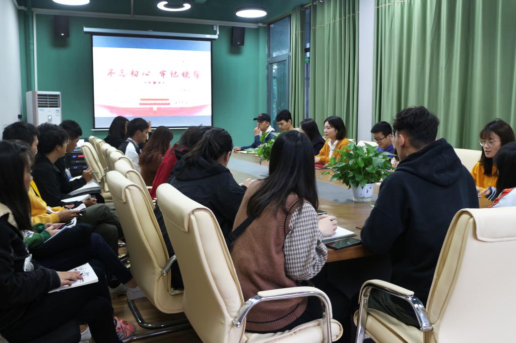 为深入学习习近平新时代中国特色社会主义思想,加强革命传统教育,增强书院学生的责任意识和爱国情怀,2019年10月25日,花果书院于二楼大型会议室开展了“不忘初心·牢记使命”主题教育学习会。参加本次学习会的有花果书院综合办公室主任曹玉姣老师,学生发展导师郭嘉琦老师,还有花果书院学生自治委员会一届三任全体主席干部。