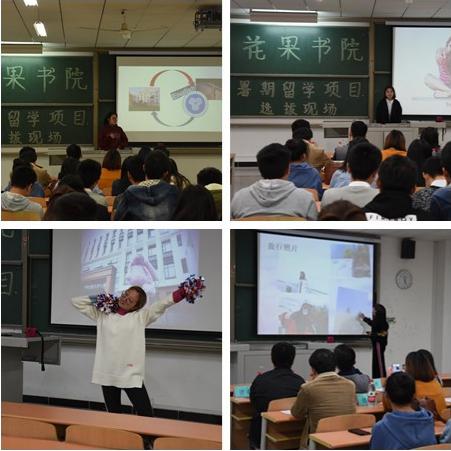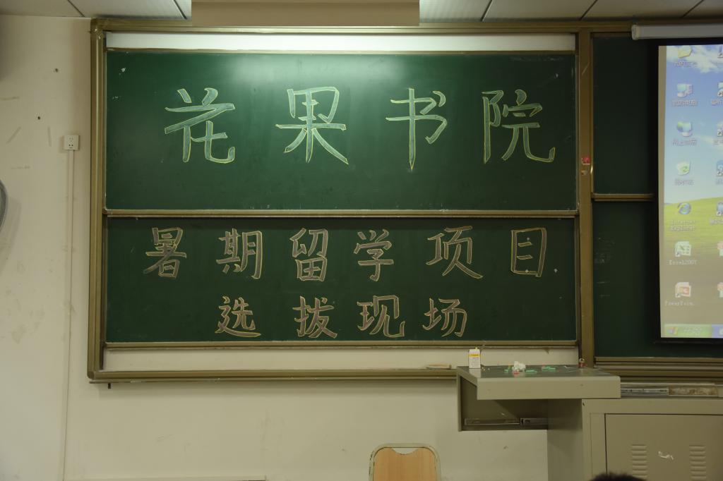 古人云:“读万卷书,行万里路”。为了开阔学生的视野,锻炼学生的语言和社交能力,学习交流东西方文化,暑期留学项目正在如火如荼的进行着,作为此次留学项目选拔的平台,花果书院学生自治委员会于11月15日下午16点半在5101进行了暑期留学项目的初试选拔。担任本次选拔的评委有:艺术传媒学院学工办主任李克伟老师、外国语言文学系的万垚老师、团委的唐彬文老师和杨成老师、花果书院综合办主任曹玉姣老师 、以及已经毕业的优秀校友贺鑫学长。