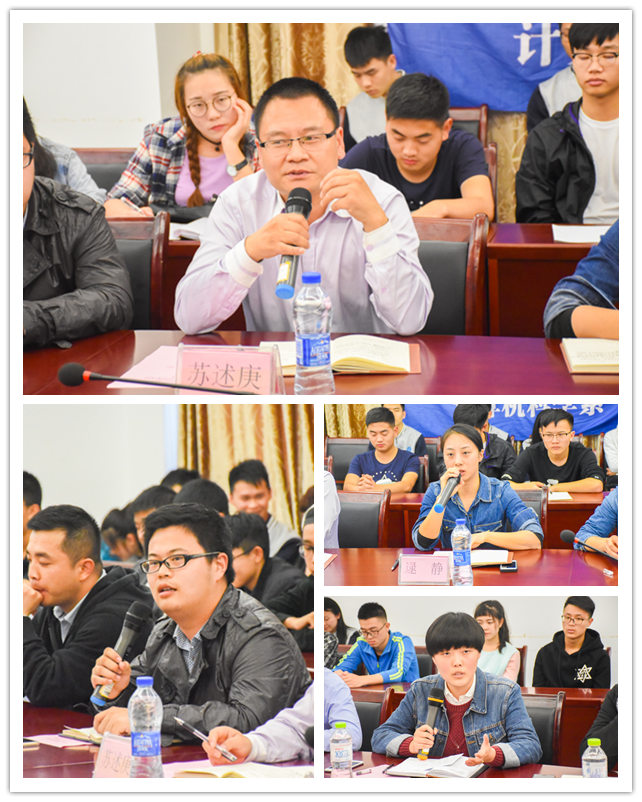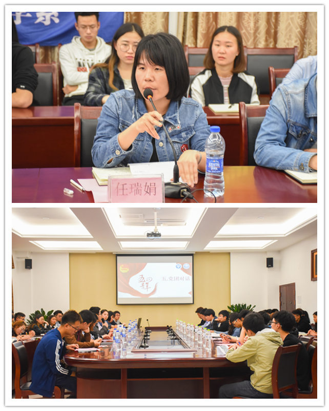 有着前面的铺垫,大家对于“五四”运动有了基本的了解,但如何在学习生活中融入“五四”精神成为了同学们面对的首当其冲的难题,对于大家的疑问,在座的老师也耐心的为大家做出了解答,诸如“作为学生干部如何帮助同学学习五四精神?”“怎么解决在带领团支部的时候出现思想懈怠的问题?”以及“怎么样提高支部主动性?”每位老师都针对现实所存在的问题给大家提出解决方法以及建议。