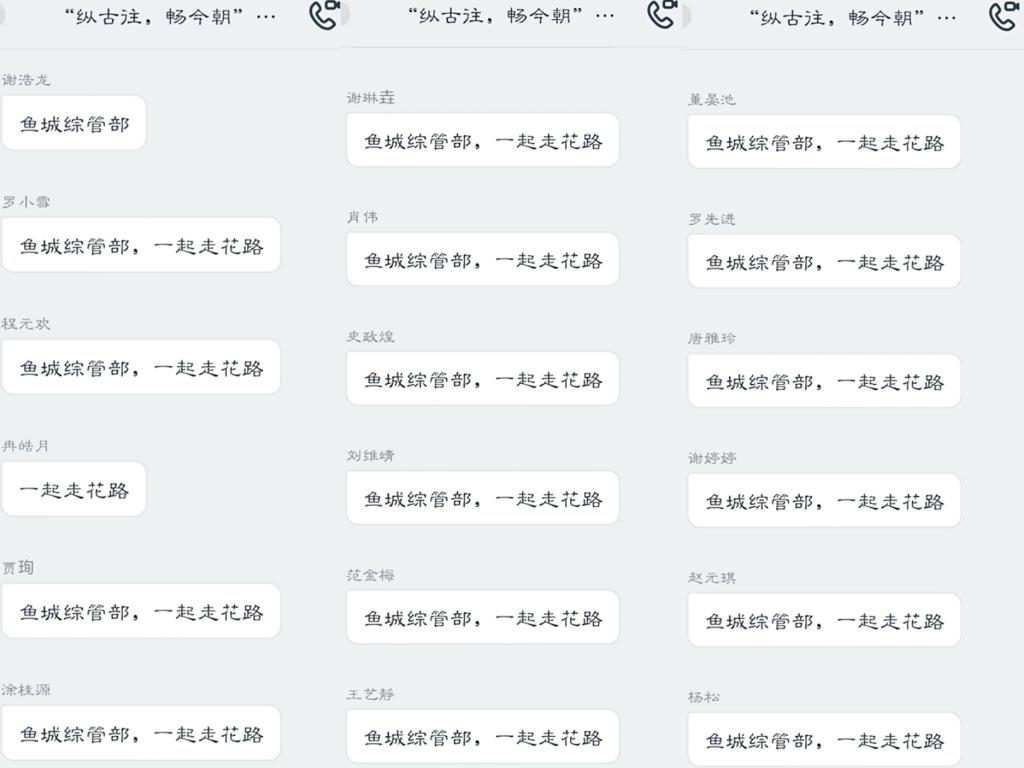 最后由钓鱼城研究会综管部谢琳垚部长进行了总结。她表示这次活动,参赛人员有着较强的积极性,敢说敢表达。比赛的最后,在满屏“鱼城综管部,一起走花路”——钓鱼城研究会综合管理部的口号中本次活动圆满结束。期待这条花路走向更远的远方。当然,这次线上钓鱼城故事会也是为“同心战‘疫’,同‘屏’共振”——2020年线上校园讲解大赛做演练的,欢迎同学们都来参加!