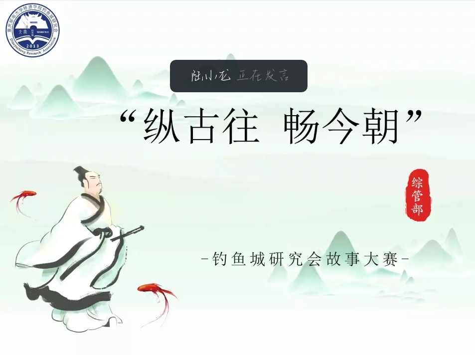 特殊时期,虽然一时无法回归校园,但钓鱼城研究会的同学们从未停止宣扬钓鱼城历史文化。这不,4月25日下午14时30分,钓鱼城研究会综合管理部以线上会议的形式成功举行了“纵古城·畅今朝”钓鱼城故事会。本次活动由钓鱼城研究会会长何李、副会长罗林、综管部部长谢琳垚及上一届钓鱼城研究会优秀讲解员乐政均、谭香妮、任艺蕾、唐御航、唐雅琳等同学担任评委,综管部干事陆小龙担任主持人。