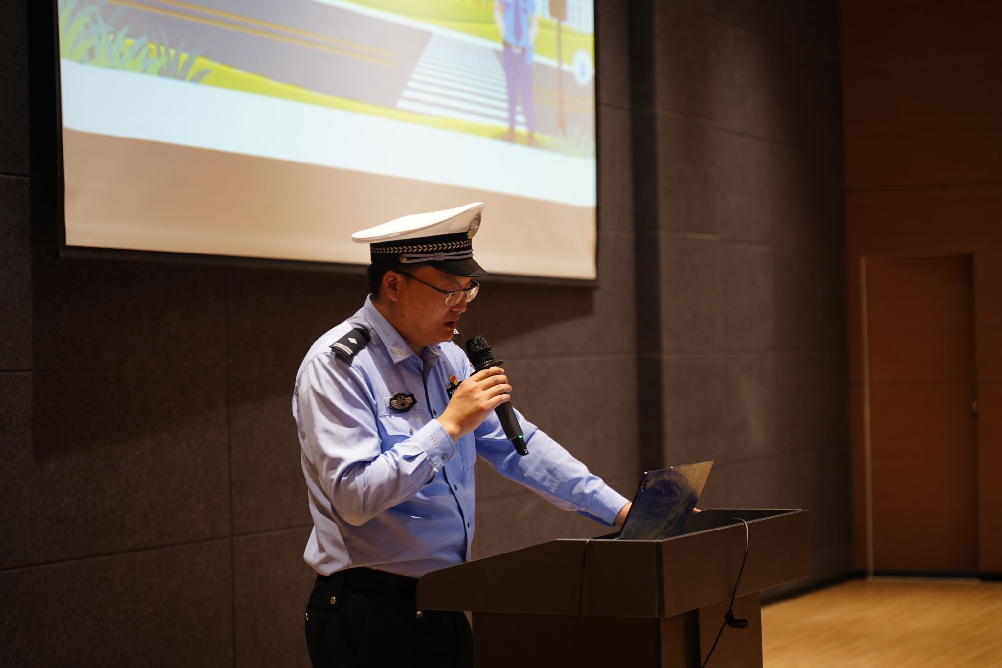 紧接着,程正超教导员开始正式进行交通安全知识理论的讲解,以案释法,先以自身的办案经历提出了几个发生在合川各大高校的真实交通事故案例,用不同的案例讲解不同的交规和交法,对交通安全相关的法律也进行了详细地普法,让同学们谨记要将法律与规则视为“铁律”刻在心中。