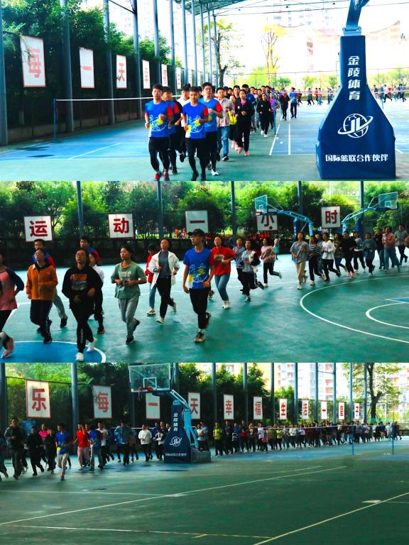 整齐的队形、铿锵有力的口号、有序的口令、旋律跃动的跑步音乐,融合交织在一起,在风雨篮球场谱写出青春欢悦的赞歌。
