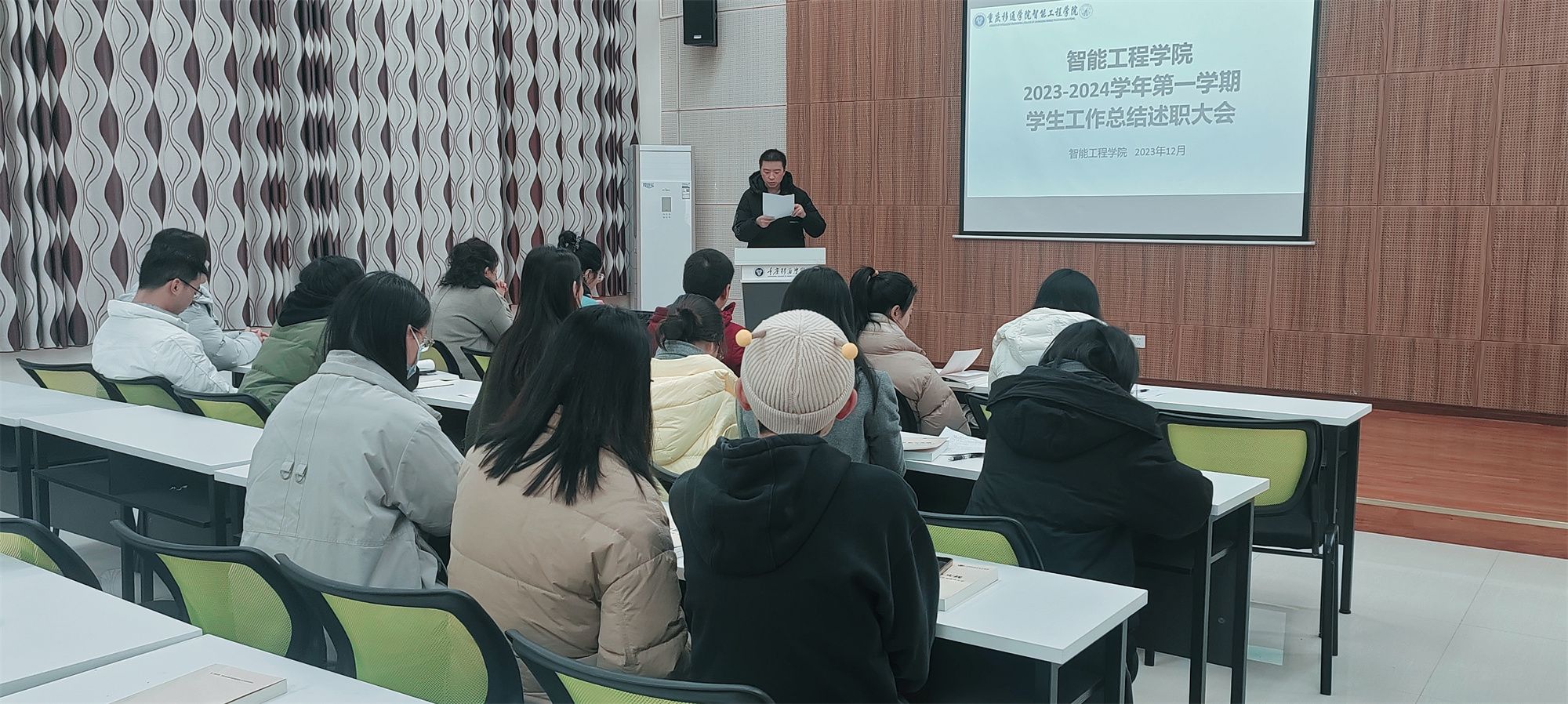 为切实加强辅导员队伍建设,造就一支职业化、专业化、专家化的辅导员队伍,12月29日上午,智能工程学院于天渠书院报告厅开展辅导员述职大会,智能工程学院学工副院长祝玮,智能工程学院全体辅导员参加此次会议,大会由智能工程学院学生工作办公室主任刘桃主持。