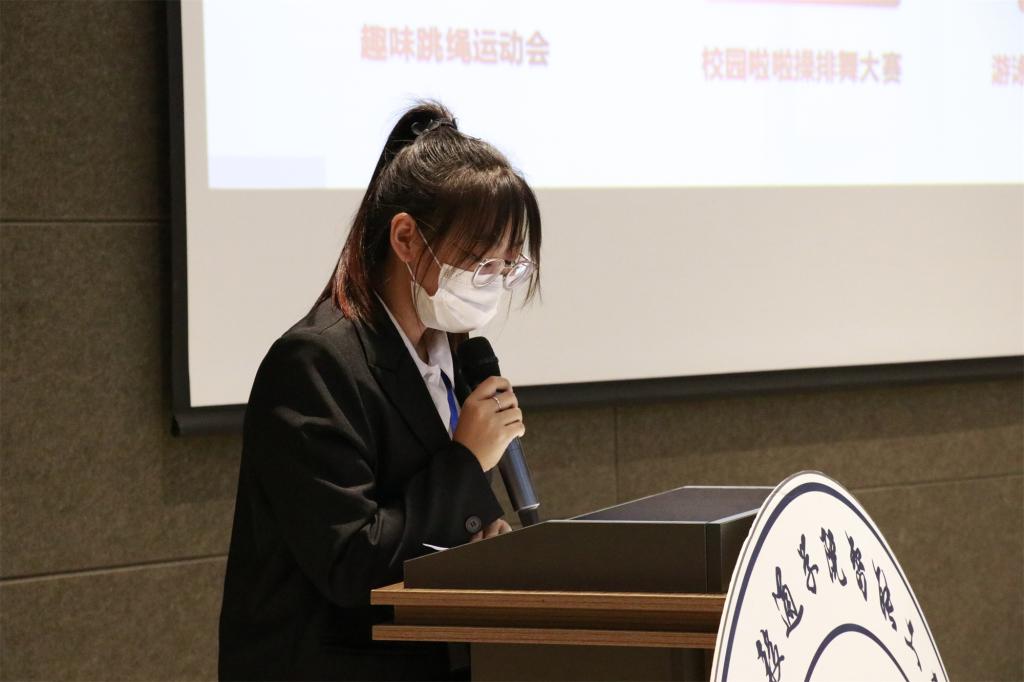 大会第一项由智能工程学院青年志愿者协会学生主席赵政同学、学生会主席胡兴玉同学以及团总支学生副书记施若蓝同学做完满教育工作总结及展望。在大会中赵政主席以阿志视角向大家讲述过去一年青年志愿者协会依托我校“1246+志愿服务”2.0新体系所开展的各项志愿服务工作以及所取得的成果;学生会主席胡兴玉提到学校“焕新提质”的重点工作引领并从组织思想建设、为同学服务、重点特色活动、宣传建设四个方面向大家分享学生会过去一年的工作总结。施若蓝同学以“焕新提质年”为年度建设主题,从“举旗帜,重学习”、“重品牌,兴文化”、“搭平台,建载体”三个方面展示并表示将继续响应党团号召,努力增强党对青年的凝聚力以及青年对党的向心力,贯彻并落实学院的指示与方针。