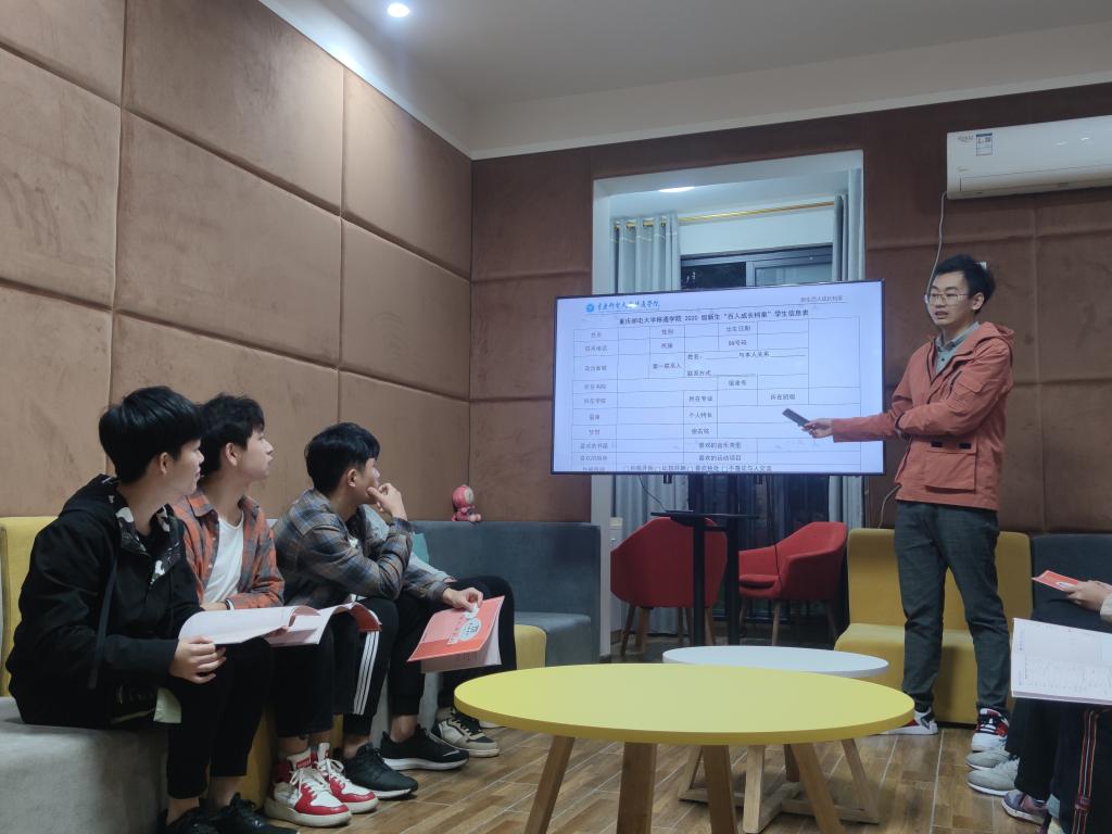 交流会后,卓老师与同学们共同探讨本学期别都书院百人成长档案项目推进事宜,就同学们普遍关注的问题,卓老师表示,别都书院一直立足于学生需求,从目标规划、朋辈引领、统筹博弈等方面搭建了多元化项目矩阵,同学们可结合成长需求,通过“青领计划”、“学长公开日”、“无领导小组讨论实训工坊”等项目逐步构建适合自己大学生涯的发展方案,同时,卓老师强烈建议同学们不仅要高效利用书院所搭建的平台项目资源,也要和双院导师积极交流,为自己定制好立体、科学、多元的发展路径。