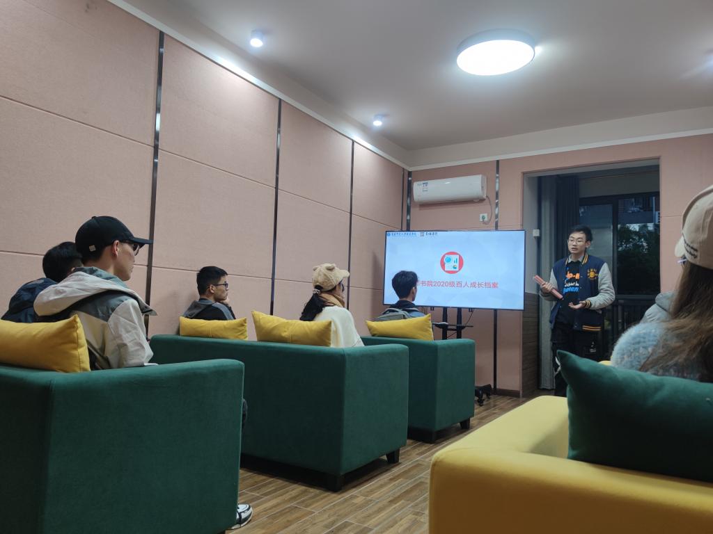 百人成长档案是以记录学生轨迹、引导学生成长、见证学生改变为目标,通过双院导师相互配合,完善学生成长轨迹的项目。为保证档案质量,双院导师每年在新生群体中招募成员,并从学生生涯规划、优势挖掘、兴趣培养等方向进行多维度观察及引导,并以学期为单位记录学生的成长轨迹,卓老师在交流会上为同学们详细解读了百人成长档案的运作方式。