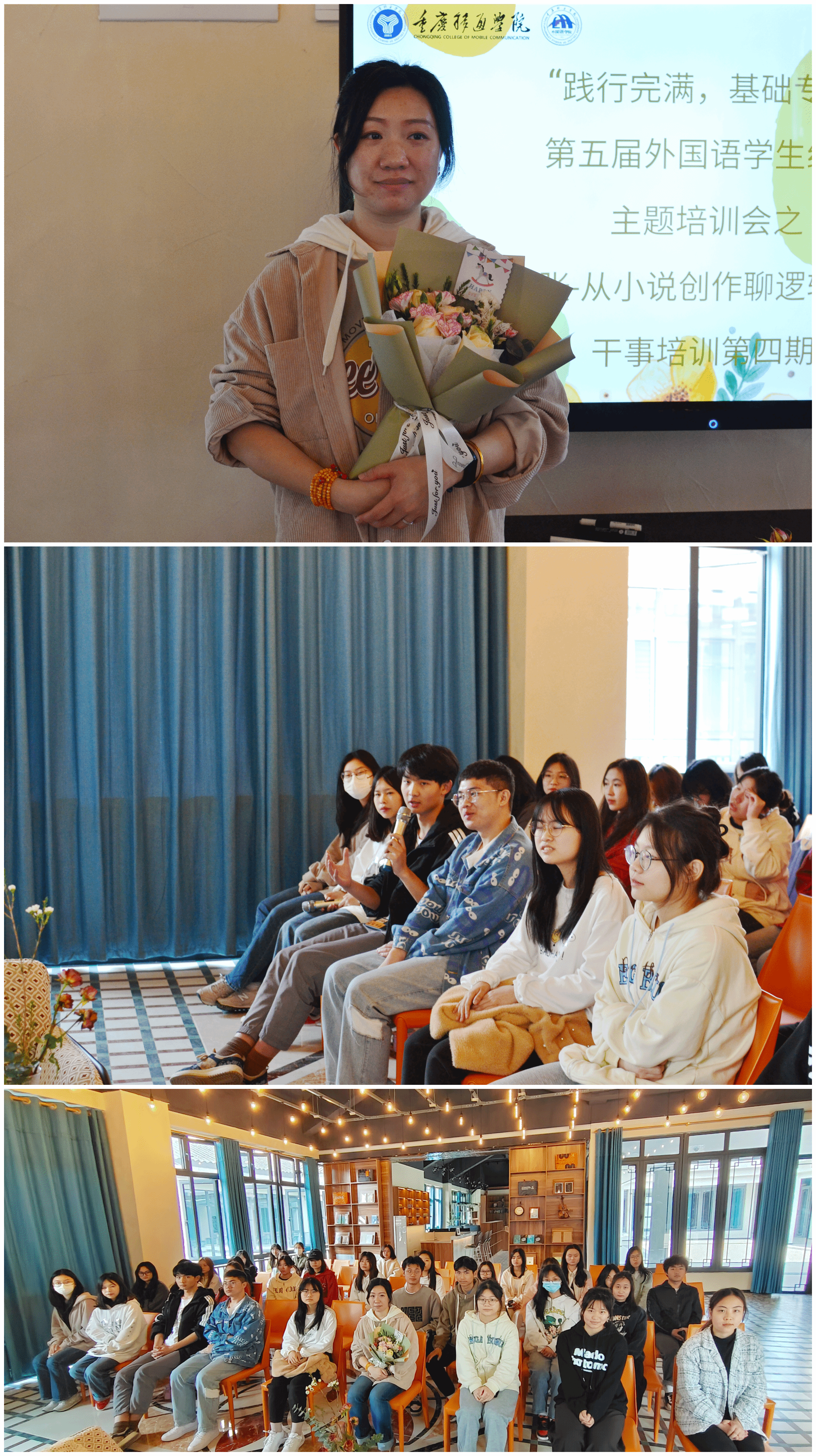 三月春盛,烟烟霞霞。为了加强各干事们的逻辑思维能力。特外国语学院学生会办公室于2023年3月14日中午12:30进行第五届外国语学院学生组织主题培训会之“别那么夸张-从小说创作聊逻辑思维的训练”干事培训第四期的主题培训。本次培训特别邀请钓鱼城科幻学院罗琳老师为大家耐心讲解。培训中罗琳老师从小说创作谈到逻辑思维,由浅入深逐步导入,进一步提高干事的写作思维能力,从而提升干事日常的工作效率。通过此次培训会,各位干事都有受益匪浅,同时也能够在今后的工作中很好地运用写作逻辑技巧,不断丰富自己的工作技能。此次干事培训共有55人参加。让我们一起期待下一次的干事培训。