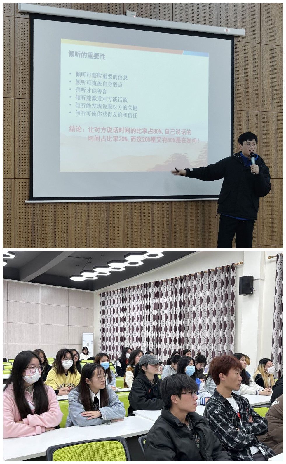 2023年3月16日中午12点30,外国语学院团总支在天渠111报告厅特外国语学院团总支于2023年3月16日中午12:30,在天渠111报告厅开展“沉淀情绪·通透自我”第二届I·EQ计划情商训练营暨干部培训第三期培训。本期情商训练进一步升华干部们对沟通的理解,提升沟通技巧、学会如何沟通,从而沉淀自己的情绪,通透自己,以有效地沟通去缓解情绪。