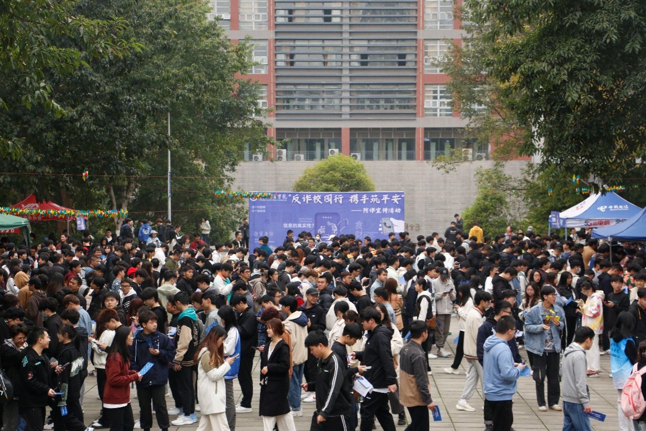 3月29日,重庆移通学院学生宿舍委员会联合重庆移通学院“猫头鹰”防诈骗志愿服务支队、大学生记者团在黄桷树广场开展了以“反诈校园行,携手筑平安”为主题的防诈骗宣传活动,活动现场热闹非凡。