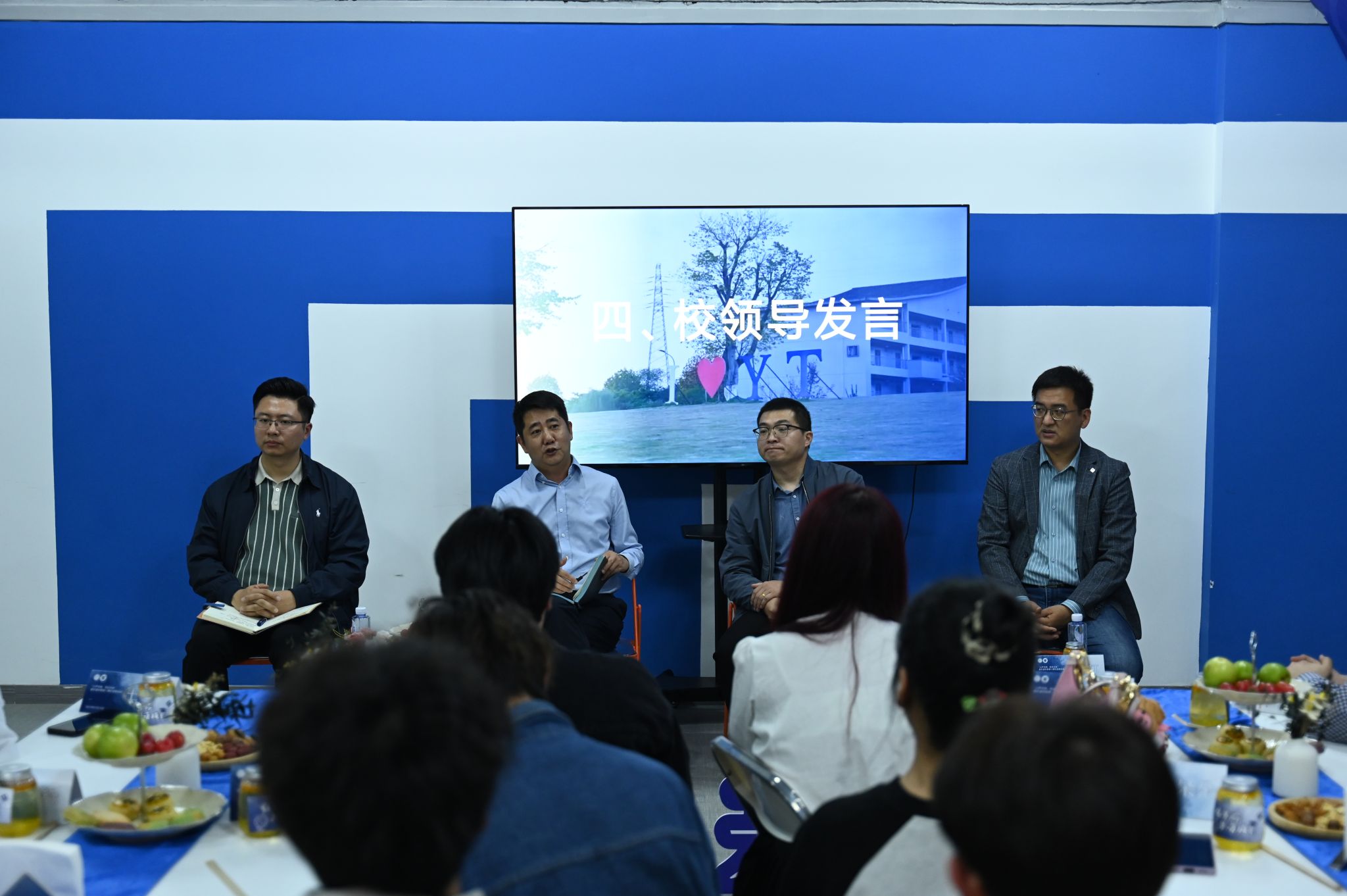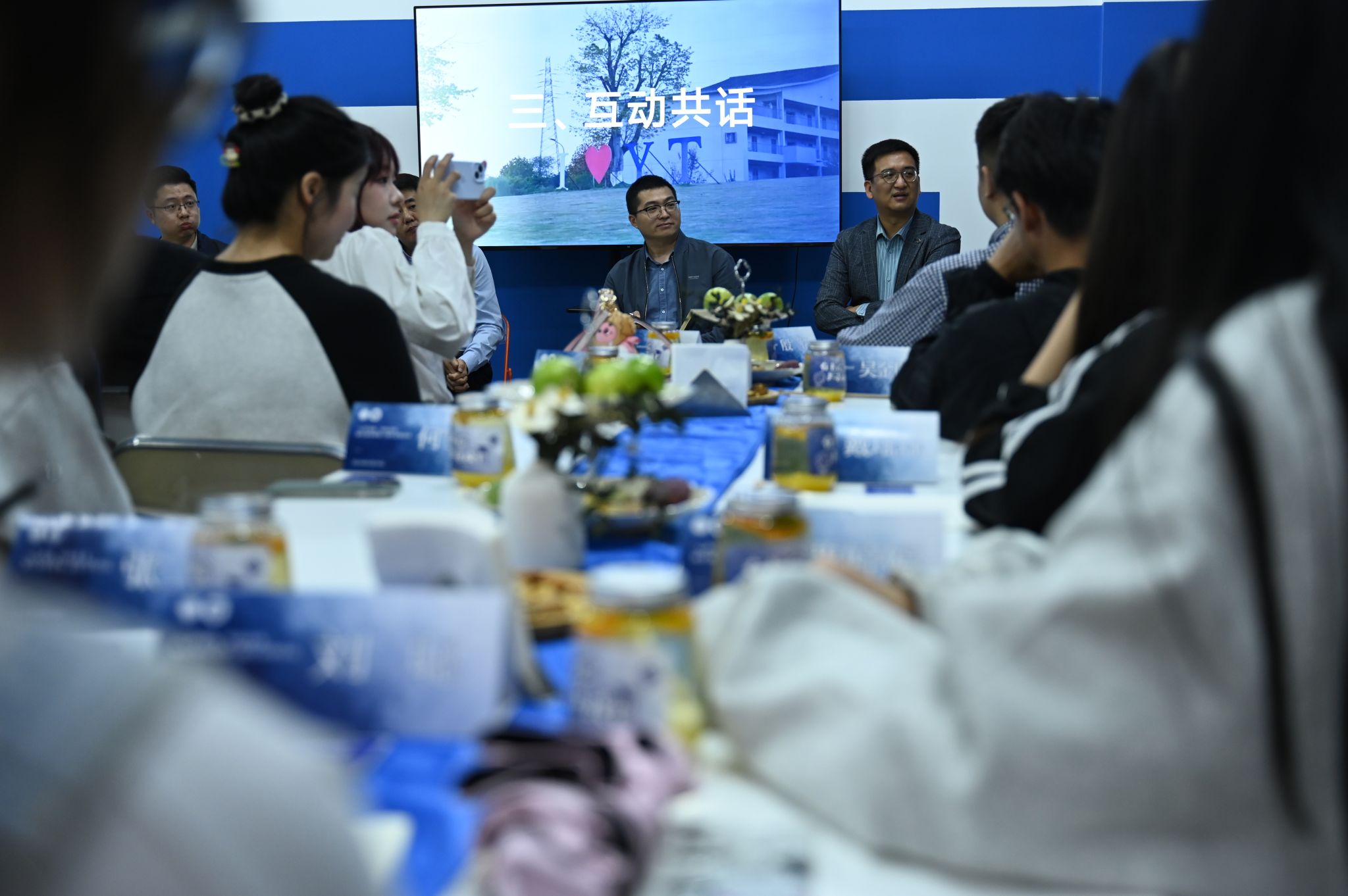 与会校领导代表与学生代表深入交流,认真听取学生意见和建议,边听边记,对现场提出的问题一一做出回应,诚恳询问同学们的看法与建议,与现场学生热切交流。