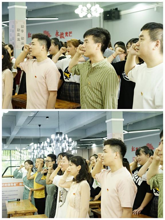 参观完红岩馆,李轶天书记带领同志们来到宣誓台,在庄严的党徽下,全体党员坚定地握紧拳头,举起右手,重温入党誓词:“我宣誓,我志愿加入中国共产党,拥护党的纲领,遵守党的章程……随时准备为党和人民牺牲一切,永不叛党!”一句句宏亮、激昂的宣誓,激励着广大党员同志充分发挥战斗堡垒和先锋模范作用,庄严的誓词更是坚定了每个党员为人民服务的责任感和使命感。响亮浩瀚的声音,回荡在整个房间。对于所有党员来说,这无疑是一次回顾初心使命,坚定理想信念的重要方式,共产党员,这是一个带着历史使命的身份,将赓续着革命的薪火,代代相传,为实现共产主义而奋斗终生。