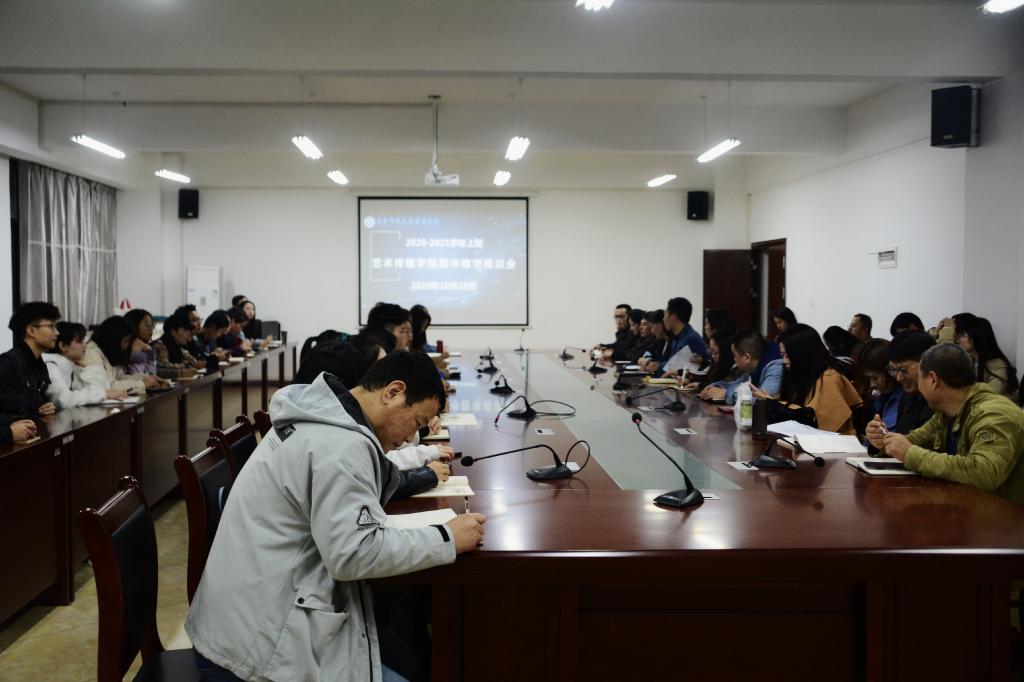 为了解学生的学习与生活现状,解答同学们在成长过程中的迷茫和困惑,提升学院教育教学质量,10月28日中午13点,艺术传媒学院2020-2021学年上期期中教学座谈会学校第四会议室举行。艺术传媒学院院长李轶天老师、副院长李克伟老师、学院各教研室主任、学院全体教师、全体辅导以及2018-2020级各专业学生代表齐聚一堂,围绕学风建设、教学工作以及学生生活等方面展开交流座谈。通过学生提问,老师现场作答的形式,为同学们答疑解惑,并给予合理的建议。