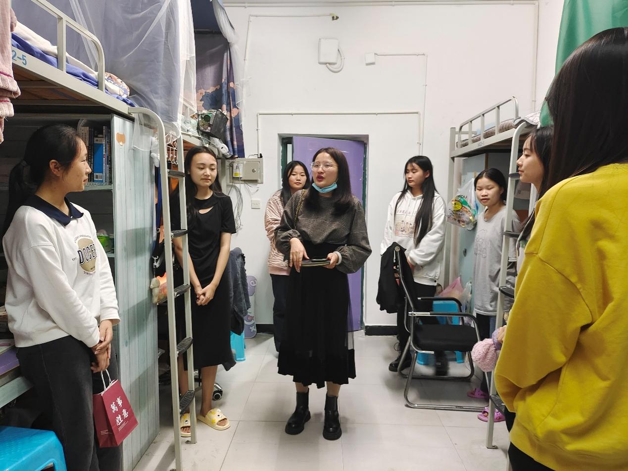 都说秋天适合思念,其实更适合见面。10月19日晚上19点,异科导师彭薇薇老师带着思念走来,来到了2021级财务管理专业34名同学的寝室,走进同学们,为同学们送去祝福与温暖的同时,了解大家的各方面的需求,近期生活状况,师生畅聊。