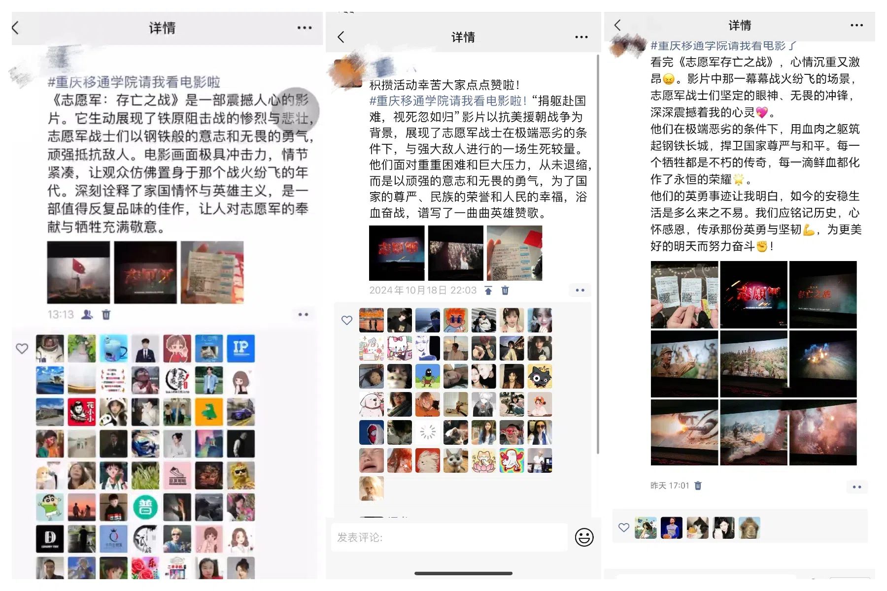 观影结束后,同学们纷纷表示,这次观影活动不仅让他们感受到了历史的厚重和革命精神的伟大,更让他们深刻意识到了作为新时代青年所肩负的责任和使命,将牢记历史,不忘初心,以实际行动继承和发扬志愿军精神,以更加坚定的理想信念投入到今后的生活中去,克服困难,刻苦学习,积极参加各类社会实践,为自己的美好未来打下坚实的基础,为祖国的繁荣富强贡献自己的力量!