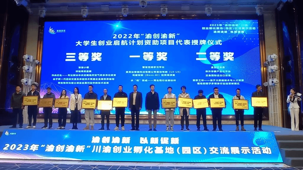本次活动为川渝创业孵化基地(园区)的首次交流展示活动,并由川渝两地人社部门共同主办,以“创业孵化基地(园区)如何更好运营管理”为主题,围绕政策落地、运营管理、带动就业、孵化成效、数字赋能等内容展开,指导创业孵化基地(园区)如何创新服务方式、提升服务水平,聚合创业资源、充分发挥创业载体的作用。同时,活动还专门为2022年“渝创渝新”大学生创业启航计划资助项目代表进行授牌。经过自主申报、区县初审、市级复审、实地抽查、专家评审五个环节,我校“正盒国际进出口贸易重庆有限公司”、“森云影视文化——“双层资源圈”体系下的数字影像聚合生态”、十九影像三个大学生创业项目获得启航计划资助资格,同时获资助金共11万元。