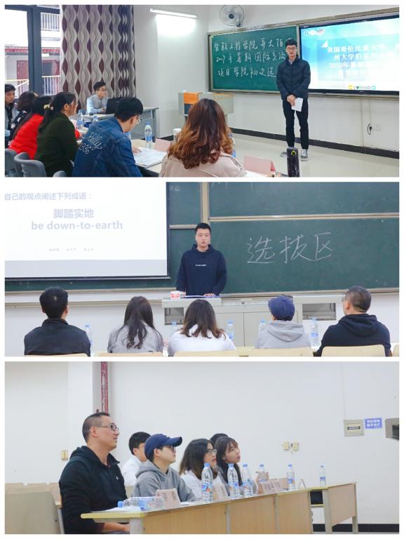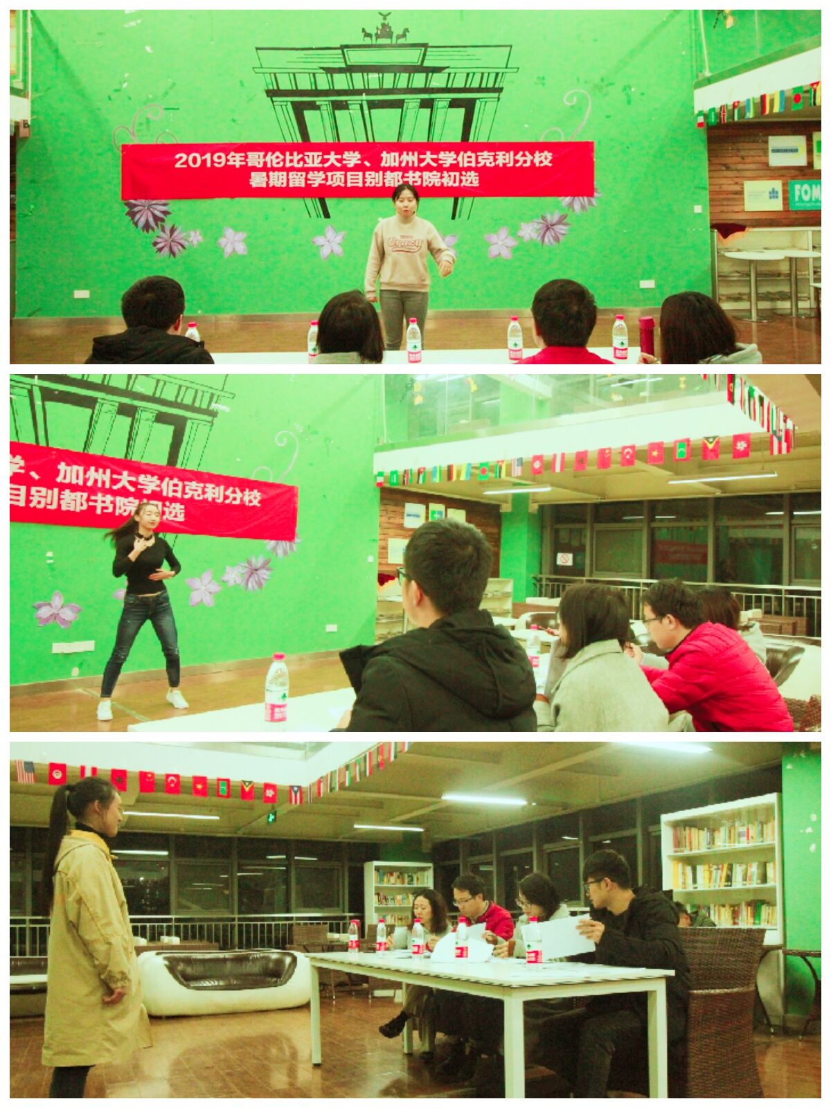 2019年哥伦比亚大学、加州大学伯克利分校暑期留学项目选拔于10月24日正式启动报名,并于当日下午16:00在3202、3203教室举行了国际交流宣讲会。宣讲会邀请了2018年留学项目的入选同学做心得分享,并介绍了2019留学项目的详细情况。截止10月30日报名阶段结束,报名人数达700余人。11月3日起,各书院围绕本书院特色“领导力”开展初选,初选方式以简单的英文考察、创意才艺展示、现场问答为主。