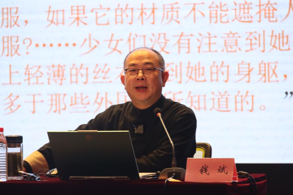 我们是谁的子孙呢?这是钱斌教授引出的第一个问题。在座的师生众口一词:“炎黄子孙。”今天首先登场的“主角”与炎黄两位中的皇帝有关,那便是皇帝的妃子——嫘祖。她首倡婚嫁,还发明了丝绸,古希腊、古罗马都争相进口,凯撒大帝、埃及艳后诸如此类的历史名人都趋之若鹜。在我们国内更是成为了嫔妃们热衷的衣着材料,将它制作成旗装。后来,旗装不断的改良成为今天的旗袍。钱教授说道“穿旗袍要想穿的风姿绰约,讲究‘阴阳之道’。”“阴”是谓衬托,“阳”是懂规矩。