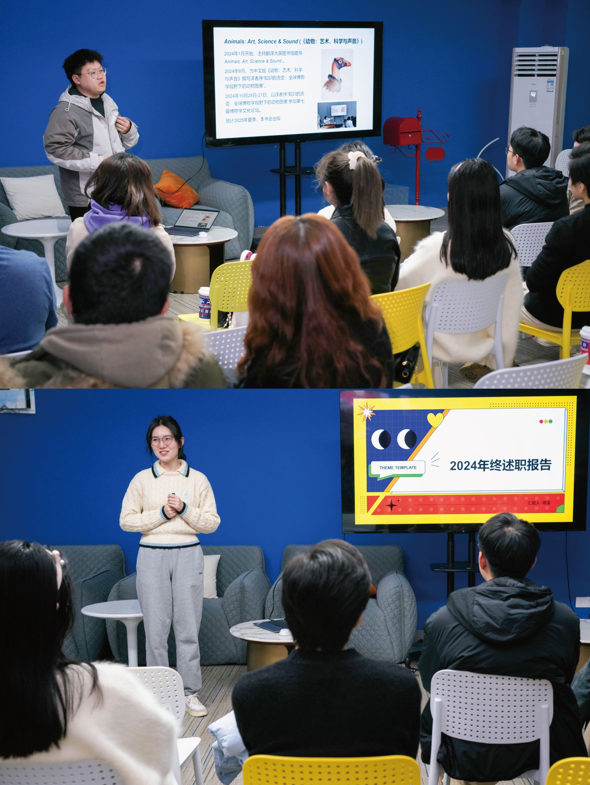 在南湖书院中德创意工坊的数字媒体艺术专业述职大会中,教师们分享了教研室在教学与科研方面的进展,展示了过去一年取得的显著教学成果。通过内部培训、外部研讨会和学术交流活动,老师们不断提升自身的专业素养和教学能力,进一步推动了教学质量的提升。教研室在教学改革方面也取得了积极进展,提出了符合学生需求和教学规律的新教学模式,为提升整体教学质量提供了有力支持。欢声笑语中,新老教师们表示,通过此次述职大会,不仅梳理了过去一年的工作,还为未来的工作积淀了宝贵的经验。