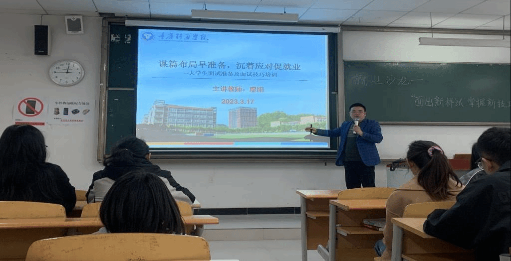 2023年3月17日15:00,由就业创业指导与服务中心主办,大数据与计算机科学学院承办的第146期“面出新样‘试’,掌握新技巧”就业沙龙在四教4101顺利举行。