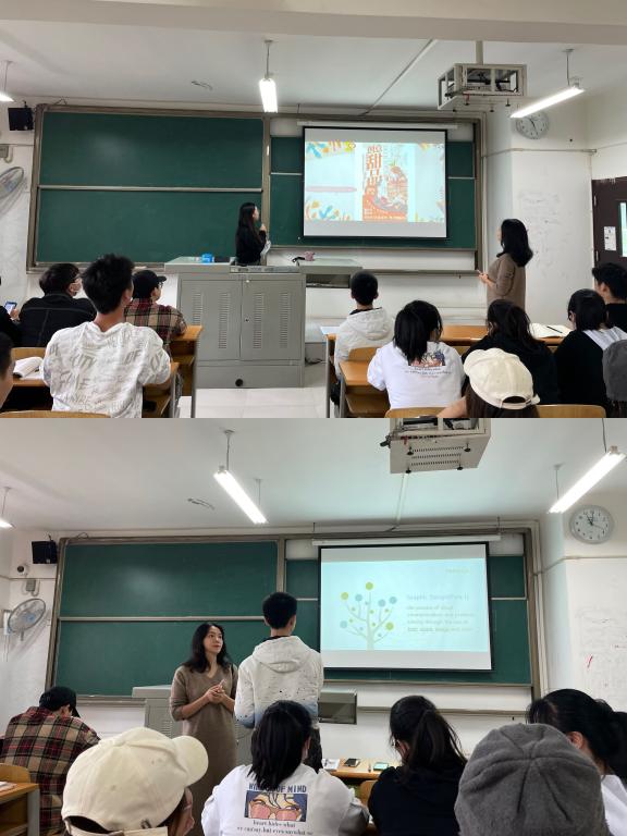 《艺术修养外语》袁阳春老师在《图片设计》单元教学中安排了与客户沟通交流、商讨设计理念和设计方案等环节,作为课堂口语练习分组实践任务,使学生可以从课堂教学层面逐步走向课堂外的现实世界,让英语学习超越语言技能学习,助力学生专业化、个性化发展。