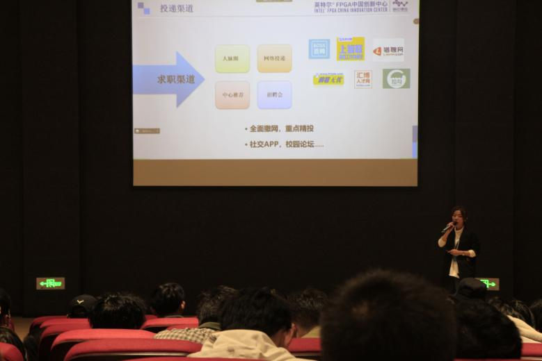 出席本次活动的嘉宾有FPGA中国创新中心就业导师陈思嘉老师、通信与信息工程学院就业创业办公室主任李林燕以及就业版块指导老师温子慧老师。
