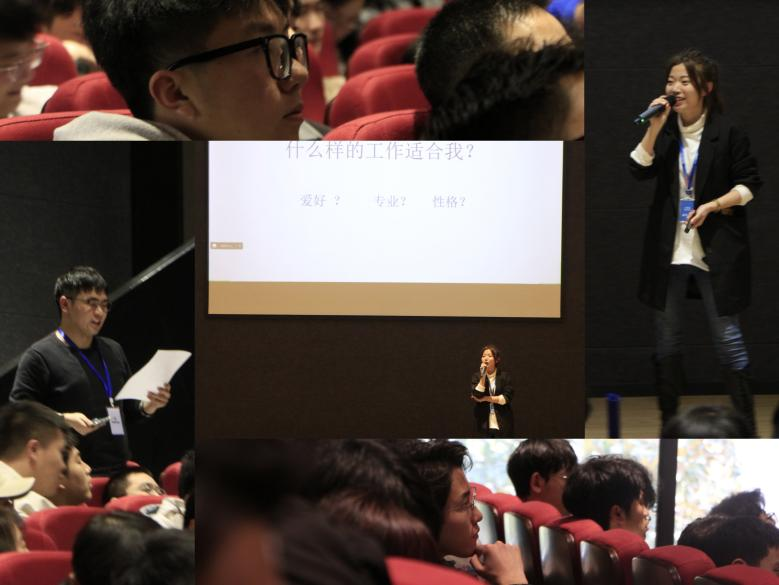 “你认为什么样的工作适合你”、“你在想什么、老板在想什么、你能做什么、企业想要你做什么”,陈老师用简明的提问的在开场询问了同学们以上两个问题引入主题岗位认知。同时,陈老师为同学们讲述了爱好、专业、性格与工作的关系,他认为:“工作,并不是去迎合你的专业,也不是强调你的性格,更不是去满足你的爱好,个人事业成功的三要素:热爱+坚持+小事做好,且记住两句话,动机很重要;天下大事必做于细,天下难事必做于易。”