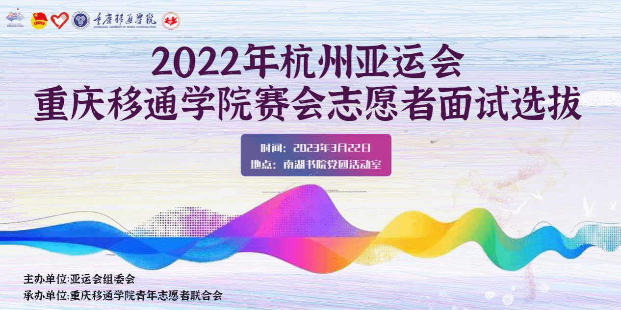 今年3月,我校成功争取参与2022年第19届杭州亚运会志愿服务,成为重庆市3所招募高校之一。为进一步提高我校参与赛会志愿服务的水平,更好地展示我校青年志愿者的良好精神状态和青春风采,校团委、校青年志愿者联合会于2023年3月22日-3月30日组织开展了2022年第19届杭州亚运会志愿者招募选拔工作,双校区分批次同步开展志愿者面试。前期,共收到来自双校区的600余份简历,经过层层筛选,最终280名同学脱颖而出,成为2022年第19届杭州亚运会储备志愿者。
