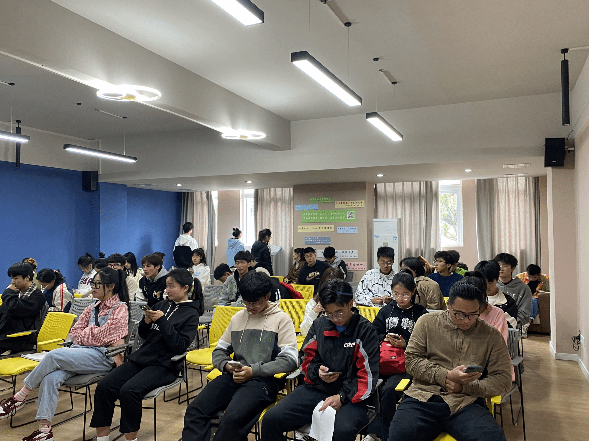 寒冷的天气抵挡不住心中的热忱,心中的期盼加速前进的步伐。小伙伴们早早地就来到候场区,面试共分为4场,每场80余人,面试者5人一组,在工作人员的引导下陆续进行签到,等待候场。在候场室,前来面试的小伙伴们积极地准备着面试材料,只为争取在面试时展现出最好的自己。