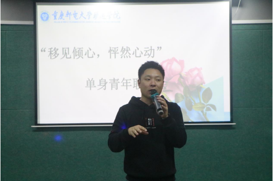 本次旅行的第二个站点——爱的谏言由思政学院姚黎华老师分享他的故事。他讲到,单身青年联谊会是他与他的妻子故事的起点,姚老师向大家分享了他们相遇相识相知相爱的动人故事,带所有人走进人生中最幸福的旅程。因为联谊会提供的宝贵机会,让他无比珍惜现在,放眼未来。同时姚老师也对在场所以嘉宾表达了自己的期待与祝福,希望他们找到自己心目中的另一半,将移通成为爱的起点,携手走向人生的旅程。