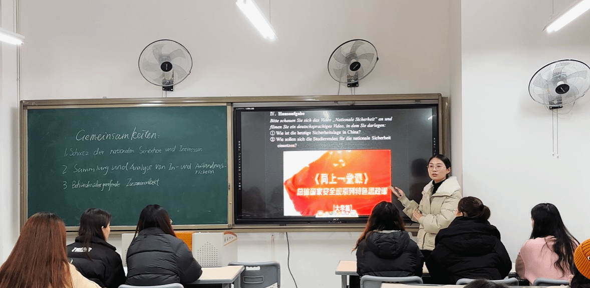 此次赛课是外国语学院课程思政示范课校级课程遴选的重要环节,德语和英语的老师们通过精妙的教学设计和生动的课堂展示,将思政教育自然融入课堂语言教学中,为现场师生带来了一场别开生面的教学盛宴。