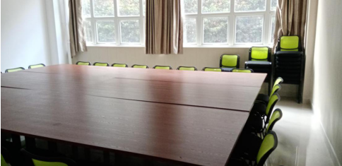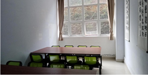 研修室位于图书馆二楼,楼层不高,便于前往。室外,右手便是借、还书之处,便可近水楼台先得月,更便利的借、还书。室内,拥有足够的空间,足够的座位。而且桌面整洁,宽广,就算放下几捆书也不再话下。窗外是阴间小道,一眼望去,你可看见绿葱葱的一小排树林,颇有田园小室的感觉。假如天晴,你可以选择享受阳光的同时去阅读。门外便是安静的阅读氛围。当然,不用担心你所带的电子设备会“罢工”,室内含有插座,可随时充电。相信在这种枕稳衾温的环境下,你可以欣然的安静阅读、独自思考。