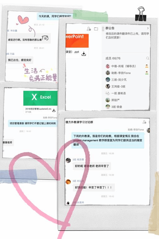 中方助教教师在德方教授专业课上进行的辅助教学,也是保持高质量线上教学不可缺少的一部分。双语教研室选拔优秀教师作为助教,以高度的责任感和专业度协助外教授课。从课前准备为学生提供课前预习,到授课期间,协助德方教授管理课堂教学秩序并提供随堂答疑。助教架起了中方和德方、老师和学生之间沟通的桥梁,以学院的高度,从项目发展的角度,兢兢业业。辅导员老师也从课堂管理方面为线上教学保驾护航,保证了学生、老师、家长之间始终信息共享,向着同一个目标前进着。