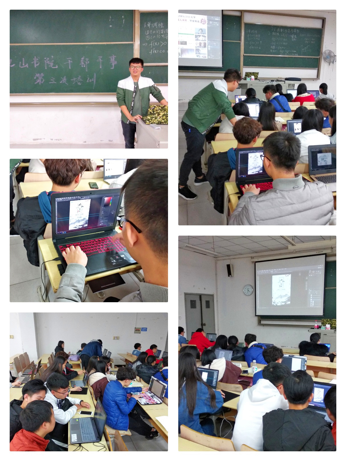 PS作为新时代大学生应必备的技能,也是多数同学们最想学习的一项技能。因此,在11月14日特别邀请了北山书院文化推广部李鹏部长为北山书院全体干部干事进行PS的培训。李鹏部长以北山书院海报制作的过程来带动干事们更加深入学习,在实际操作中去讲解相关的基础知识,从各个方面讲解海报的基本操作、制作内容选取以及绘图处理等。