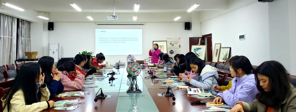 12月5日下午4时,我校非物质文化遗产研究中心“传承人讲传承”学术沙龙活动在艺术楼一楼会议室举行,活动邀请到了国家一级刺绣师单大琼女士分享刺绣的相关知识及手工制作技艺,非遗中心30多名学生研究员参加了传习活动。