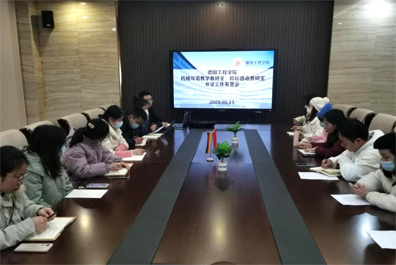 2月15日,德国工程学院欧标德语教研室与机械双语教学教研室在中德会议室联合召开新学期工作布置会。会议由欧标德语教研室主任张亮和机械双语教学教研室主任谭劲秋主持,全体德语教师出席会议。