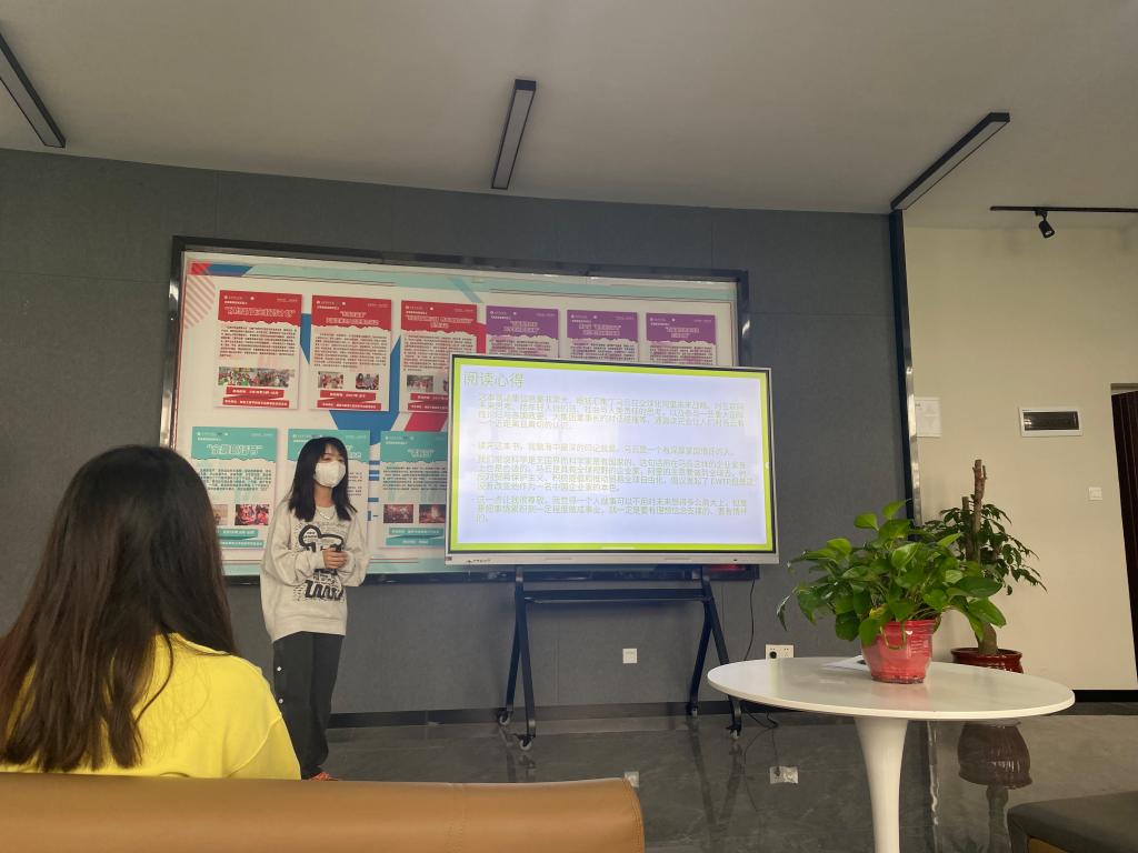 财务管理6班张丹泥同学首先对《马云 未来已来》进行阅读分享,张同学首先介绍了这本书的特色之处,这是一本谈话集,具有发散性、随意性、简洁性,体现了马云信马由缰的开阔视野和不拘约束、率性而为的潇洒风格。张同学分享她阅读后最大的感悟:马云是一个有深厚家国情怀的人。这样的人是值得尊敬的,真心愿我们的社会越来越多的这样心系人类、具有大格局与胸怀的有识之士,特別是企业家、政治家群体们。
