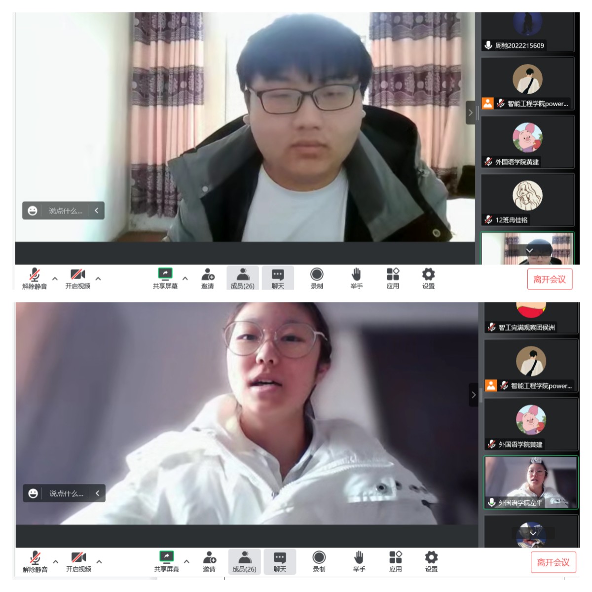 完满观察团指导老师进行了总结发言。智能工程学院Power完满观察团指导老师谭英姿老师指出牢固树立团队“一盘棋”意识,在疫情当下展望新程,既要迎难而上、攻坚克难,又要团结奋斗开启新篇章。外国语学院Starlight完满观察团指导老师屠建丽老师提到两院观察团的工作成就是有目共睹的,是值得肯定的。另外,她还建议观察团的团员们做好以下三点:第一,从模仿到升华。注意借鉴过往经验,在实践中探寻适合自己的道路。第二,不要拥有畏难情绪。在面对困难时学会多交流、多探讨,树立合作共赢观。第三,采访的问题要聚焦。要抓住主办方举办过程所遇的困难有针对性发问。
