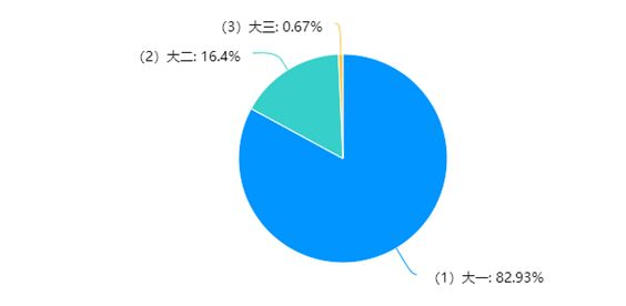 本次调查问卷分为两份:一份面向教师,一份面向学生。参与问卷调查的教师共29位,通识教学部的教师基本都参与此问卷。参与问卷调查的学生共3883位,覆盖8个院系大一到大三不同专业的学生。其中大一学生占82.93%,大二学生占16.4%,大三学生占0.67%。