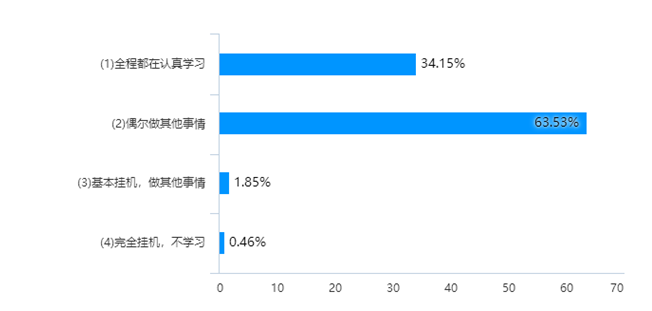 从图3.1的问卷调查统计显示,学生认为师生互动不方便,无论是QQ群直播还是腾讯课堂直播,都会影响课堂的互动效果,影响学生的课堂参与度。图3.2学生线上上课情况统计显示,63.61%的学生上课偶尔会做其他的事情,必然会影响课堂的教学效果。图3.3的教师对线上教学存在的困难和疑虑调查统计显示,教师认为学生的课堂参与度不好把控影响教学效果的占86.21%,占最大的比例,很多老师表示看不到学生听课的状态,无法准确判断学生接收课程内容的程度,从而影响课程教学的效果。图3.4所示,教师认为学生的上课注意力是影响课堂教学效果最重要的原因之一,学生的注意力必然直接影响学生的课堂参与度。