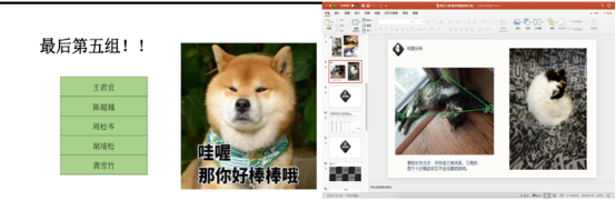 第五组拍摄“萌宠”,由胡靖松同学主讲,通过对宠物进行拍摄,从构图、视角、光线、布局四个因素拟合得到线性回归模型,对不同的宠物拍摄照片进行评分。通过Matlab软件对数据进行拟合得到线性回归模型,最后也利用新的宠物照片进行了模型检验。