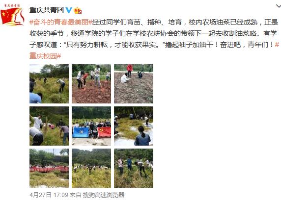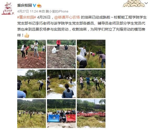 4月26日,远景农场经济作物种植园迎来了新一轮的油菜丰收,整块油菜种植区域经过同学们的努力耕耘,换来了丰硕的果实。来自我校智能工程学院的学生党支部将支部生活会安排在此,学生党支部全体成员与该学院辅导员老师、学生代表40余名来到远景农场,党组织生活实践落在田间地里,在躬耕实践中淬炼,提升组织活力。