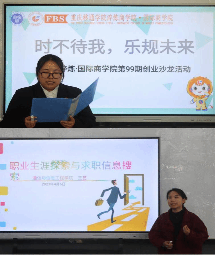 为了让同学们更加深刻了解创业,识别身边的创业机会,抓住创业时机。由就业创业指导中心主办、淬炼·国际商学院就业助理团承办的“时不待我,乐规未来”第99期创业沙龙活动于2023年4月6日在南湖书院中德创意工坊成功举办。本此活动邀请到重庆移通学院创新创业库导师、通信与信息工程学院辅导员王艺老师作为主讲人为大一学生进行讲解。