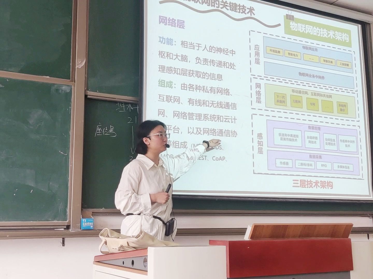 课程伊始,通识教学部的黄延果老师通过生活中的智能家居、智能交通等智能化应用,引出了目前新一代信息技术的重要组成部分——物联网。激发了同学们对身边智能设备中所涉及的高新技术的探索欲望,引导学生积极地去了解和探索这些技术的应用和发展。