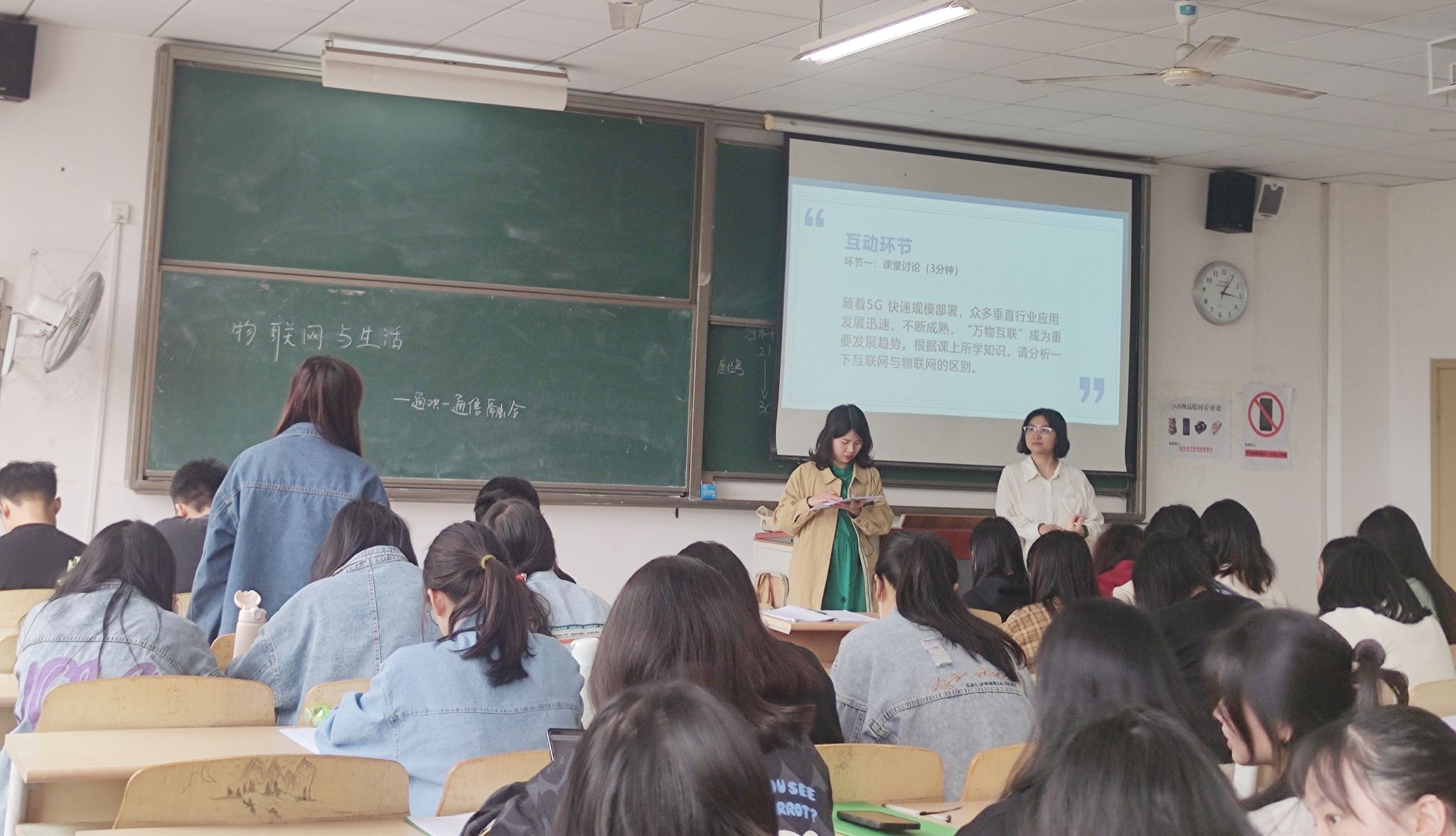 为了促进“专业+通识”的融合发展,培养跨学科复合型人才,4月3日下午,通信与信息工程学院专业基础教研室的吴萍老师和通识教学部黄延果老师联合开展了“学科交叉、双师合作”的教学活动,她们在5301教室共同带领2022级财经管理专业的同学们用不同的视角去发现生活中的“物联网”应用。这样的教学模式,是对教师的教学思维、方法和能力的一次全新考验。
